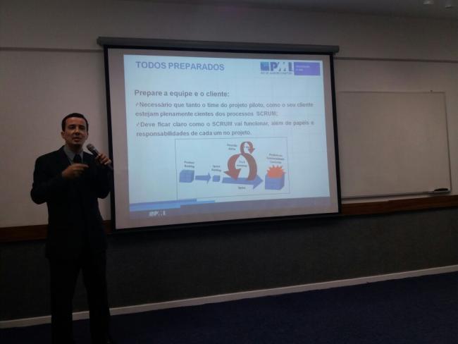 Para discutir o assunto, o PMI trouxe o Palestrante Luiz Felipe, que é Consultor de Gerenciamento Projetos e Scrum Master, ele destacou a aplicabilidade do Scrum em projetos complexos, o papel do Scrum Master como guardião do projeto e a importância de uma equipe multidisciplinar preparada.